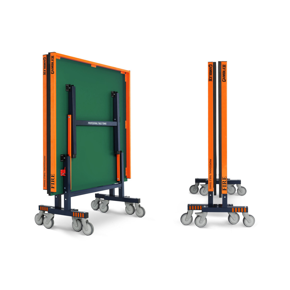 Массивная столешница повышенной плотности из МФД (30 мм) и металлическая тележка в качестве базы обеспечивают максимальную устойчивость стола в процессе тренировок и соревнований.